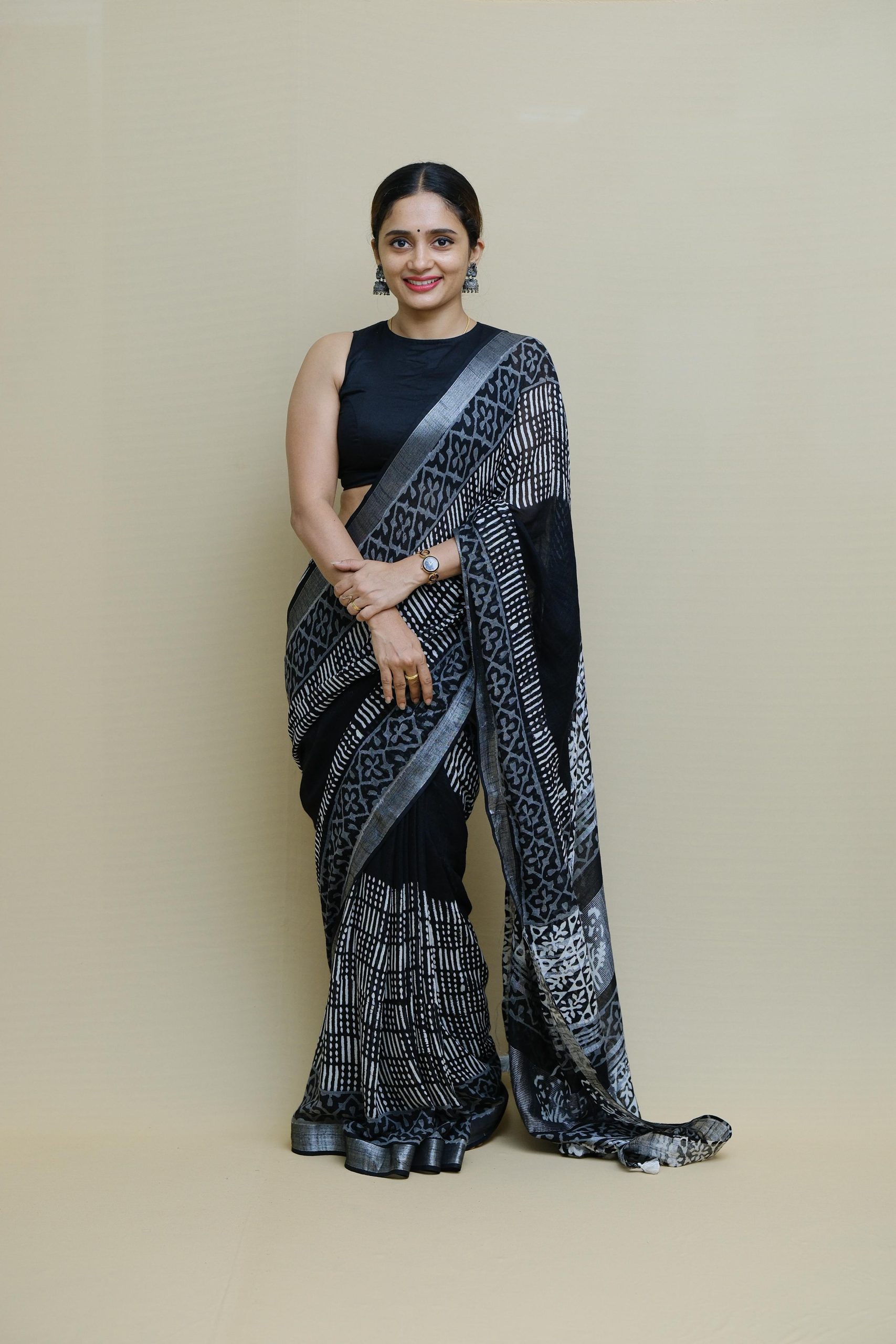 MAITHILI : Linen Cotton Black Saree