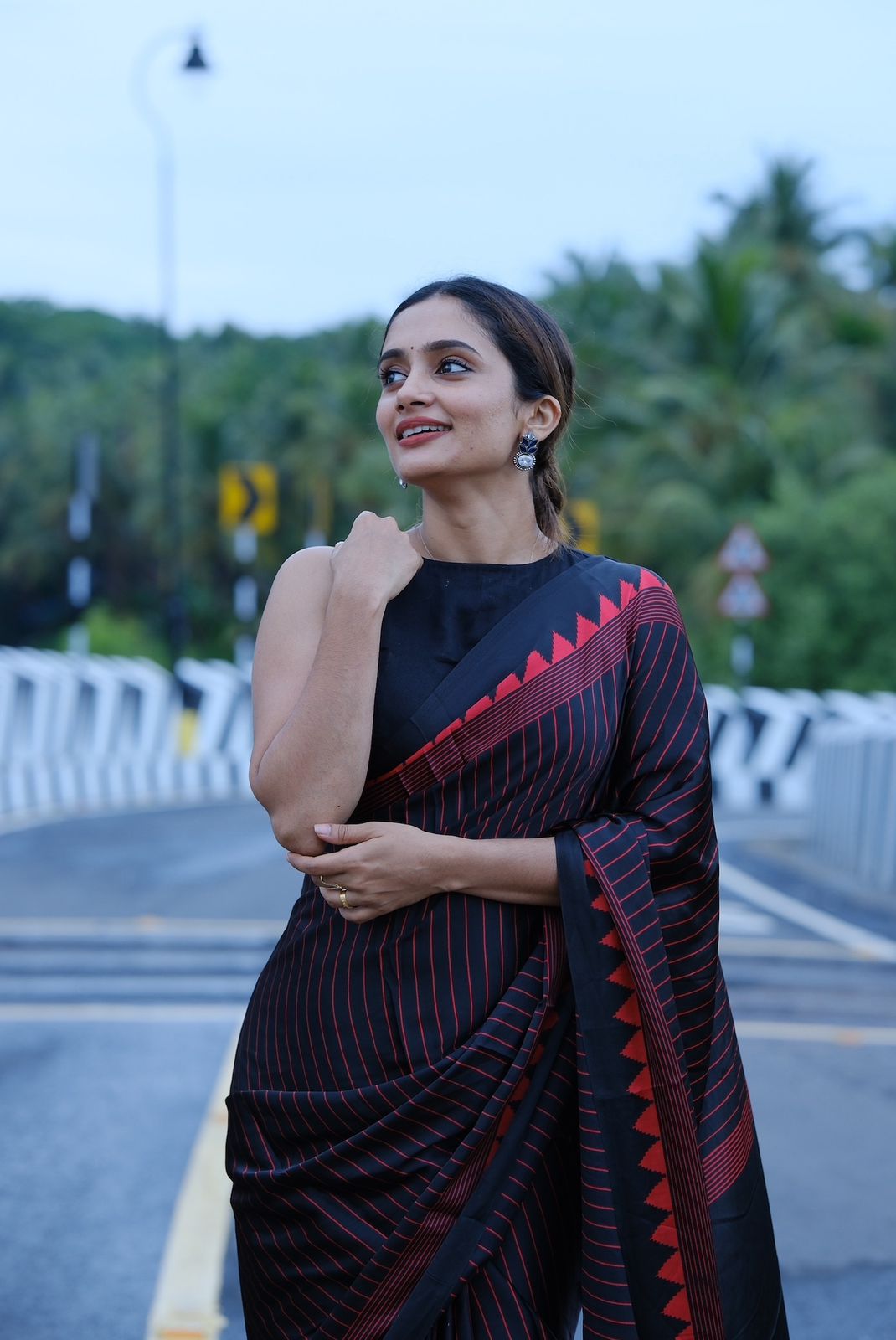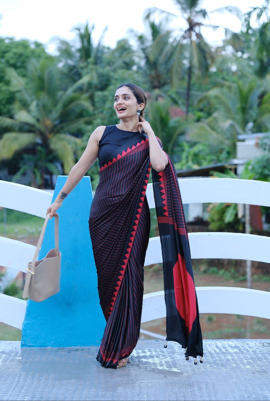TANYA : SEMI MODAL SILK MAROON WITH AJRAK BORDER SAREE